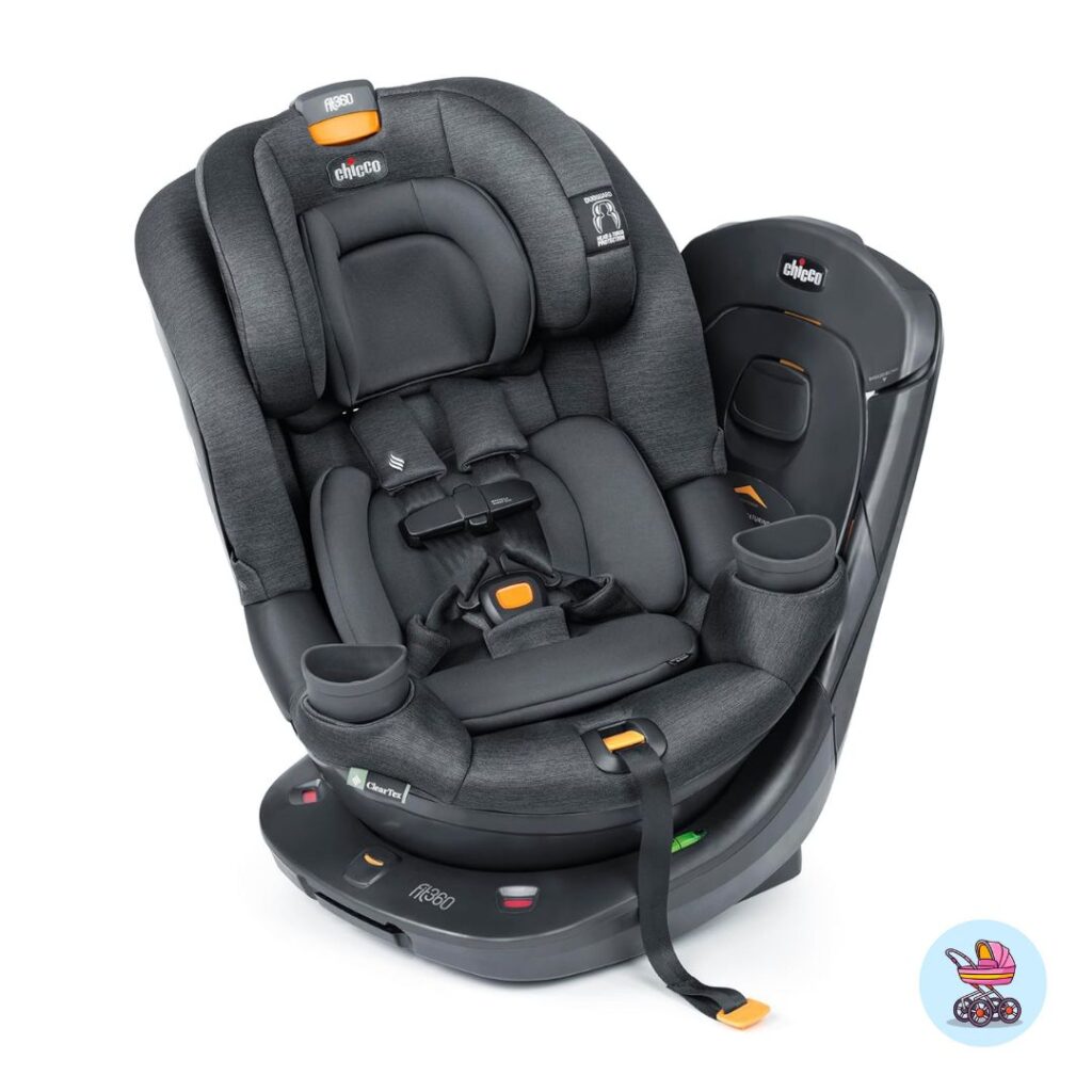 The Chicco Fit360 emphasizes comfort and convenience. It features a reclining car seat and adjustable harness height, allowing children to nap comfortably during drives. Parents enjoy the smooth rotation, easy LATCH system installation, and practical convertible car seat stages. The seat’s durable padding and one-time setup make it perfect for busy families who want safety, comfort, and hassle-free usability in one package.