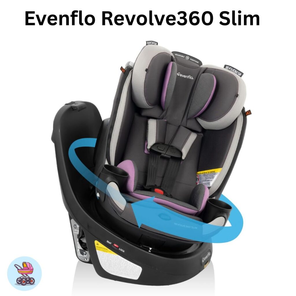 For families with smaller vehicles or tight back seats, the Evenflo Revolve360 Slim offers a similar feature set as the standard Revolve360 but in a narrower frame. Parents love the ability to rotate the seat easily while keeping all safety features intact, including side-impact protection, anti-rebound base, and adjustable harness height. The Slim model is perfect for multi-child households needing practical space-saving solutions without compromising on safety or comfort.
